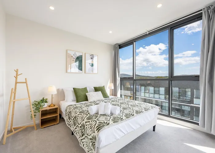 Overlooking the mountain, the 60 m² Cozy Lyneham Retreat, Views, Gym N Free Parking Apartment Canberra is 950 metres from Canberra Business Chamber in Canberra.